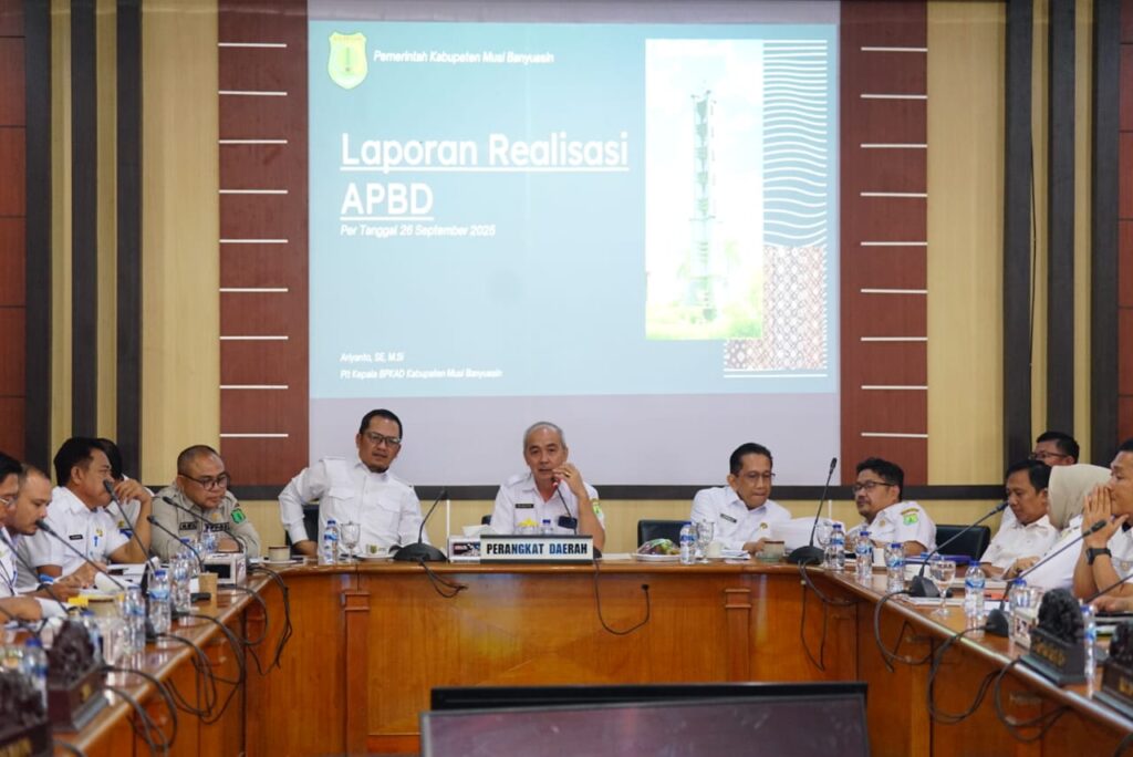 SEKAYU – Badan Anggaran (Bangar) Dewan Perwakilan Rakyat Daerah (DPRD) Kabupaten Musi Banyuasin (Muba) menggelar rapat evaluasi mendalam terkait realisasi Anggaran Pendapatan dan Belanja Daerah (APBD) Tahun Anggaran 2025. Rapat yang dipimpin langsung oleh Ketua DPRD Muba sekaligus Ketua Bangar, Afitni Junaidi Gumay, S.E, berlangsung di Ruang Rapat Badan Musyawarah DPRD Muba pada Rabu, 1 Oktober 2025.